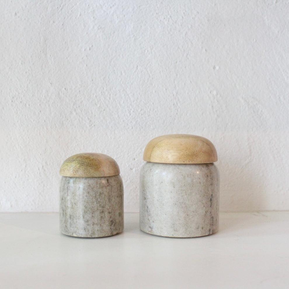 צנצנות עשויות שייש מכסה מעץ מנגו,