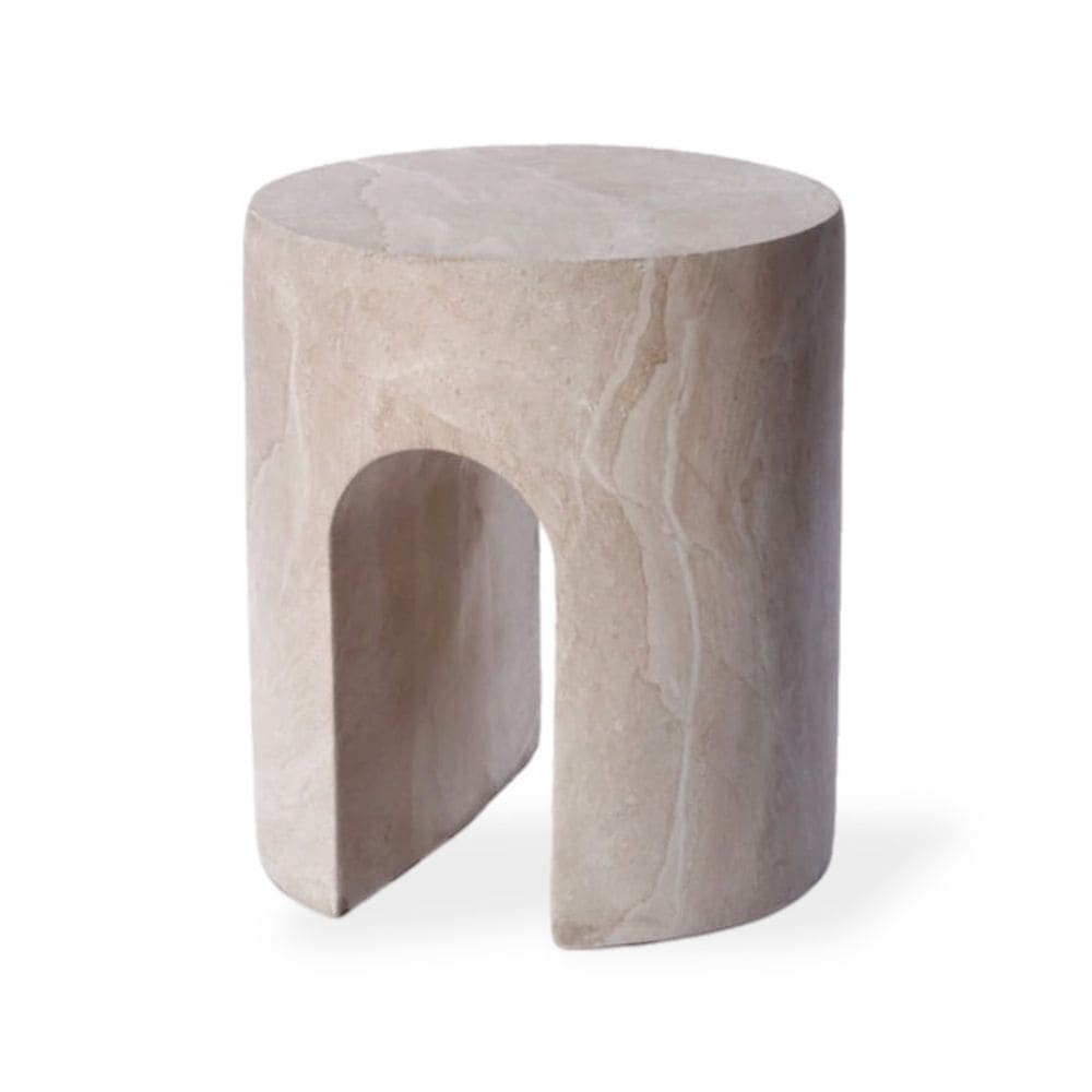 שולחן צד מעוצב בגימור דמוי טרוונטין, שמשדר יוקרה וסטייל.